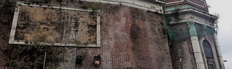 Gradual decline, entropy, or death by natural causes: buildings are still there, but look structurally unkempt, free from droppings, no longer teaming with wildlife, except the occasional clinging shrub or weed sprouting from waterlogged gutters or fall-pipes. Walls strained with the seasonal flow of rain cascading down the side of the building caused by glogged arteries and moribund maintenance cycles.